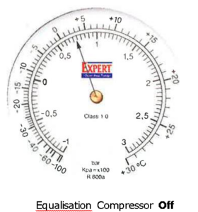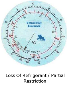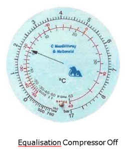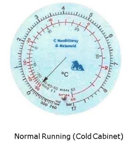 On the gauges you will find a number of different scales. The main scale we refer to is the pressure scale. This indicates the performance of a–refrigerant system. The refrigerant temperature scales show the temperature the refrigerant is operating at inside the system.
